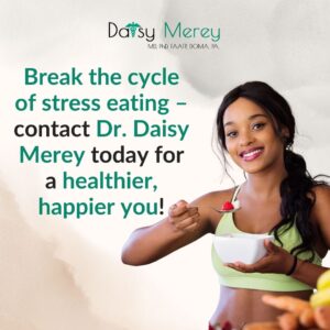 If you’re ready to break the cycle of stress eating and take control of your health, Dr. Daisy Merey is here to guide you. Contact us today to schedule a consultation with Dr. Daisy Merey.